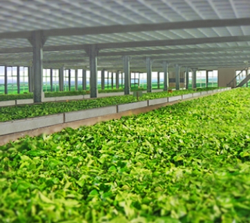Imediat după recoltare, frunzele sunt așezate pe o tavă lungă și uscate cu aer cald. În cele mai multe cazuri, aerul este furnizat prin mici deschideri în paleți pentru a accelera procesul de uscare. Frunzele devin moi după uscare, ceea ce le împiedică să se rupă atunci când sunt răsucite pe echipament de răsucire a ceaiului în timpul producerii de ceaiuri clasice sau granulare. Pe lângă reducerea conținutului de umiditate, în procesul de ofilire a frunzelor, apar alte modificări biochimice care afectează pozitiv proprietățile ceaiului produs.